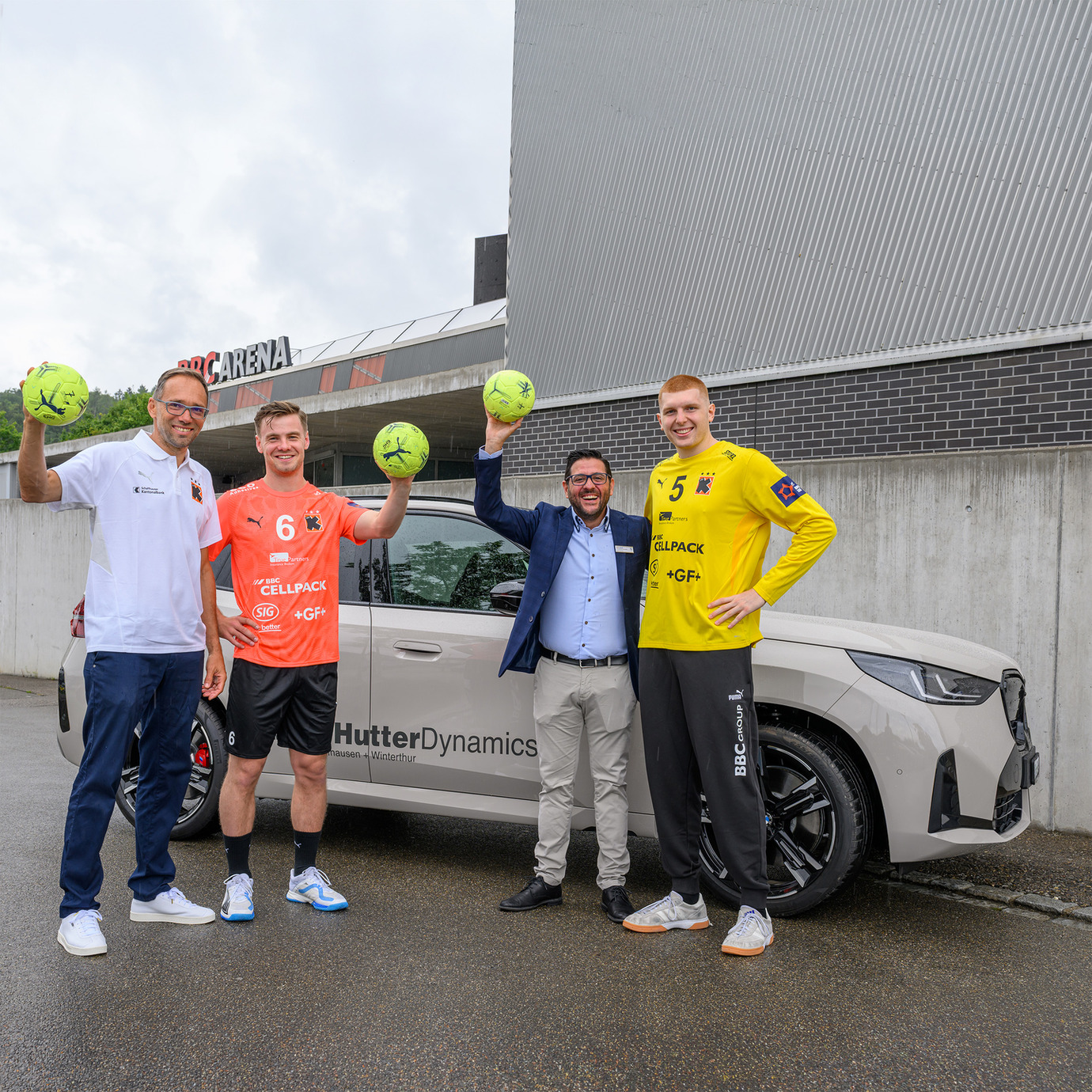 Die langjährige Partnerschaft zwischen den Kadetten Schaffhausen und Hutter Dynamics, dem traditionsreichen Mobilitäts-Berater in Schaffhausen mit den Automarken BMW und MINI wird fortgesetzt. Prof. Dr. Giorgio Behr (Präsident Kadetten Handball AG) und Markus Hutter (Inhaber Hutter Dynamics) besiegeln die erfolgreiche Zusammenarbeit, begleitet von Sophie Hutter (Leiterin Marketing) und Rocco Nardo (Verkaufsberater BMW). Hopp Kadette – gemeinsam zu einem weiteren Schweizermeister-Titel!